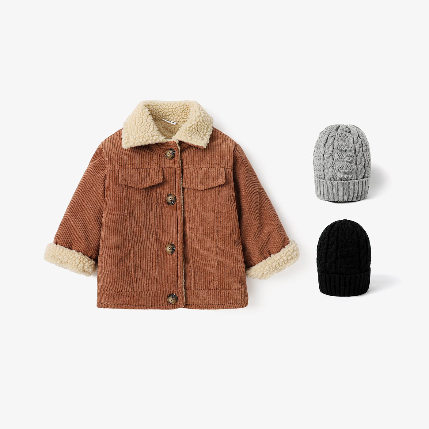 Toddler Girl/Boy Lapel Collar Button Design Fleece Lined Coat