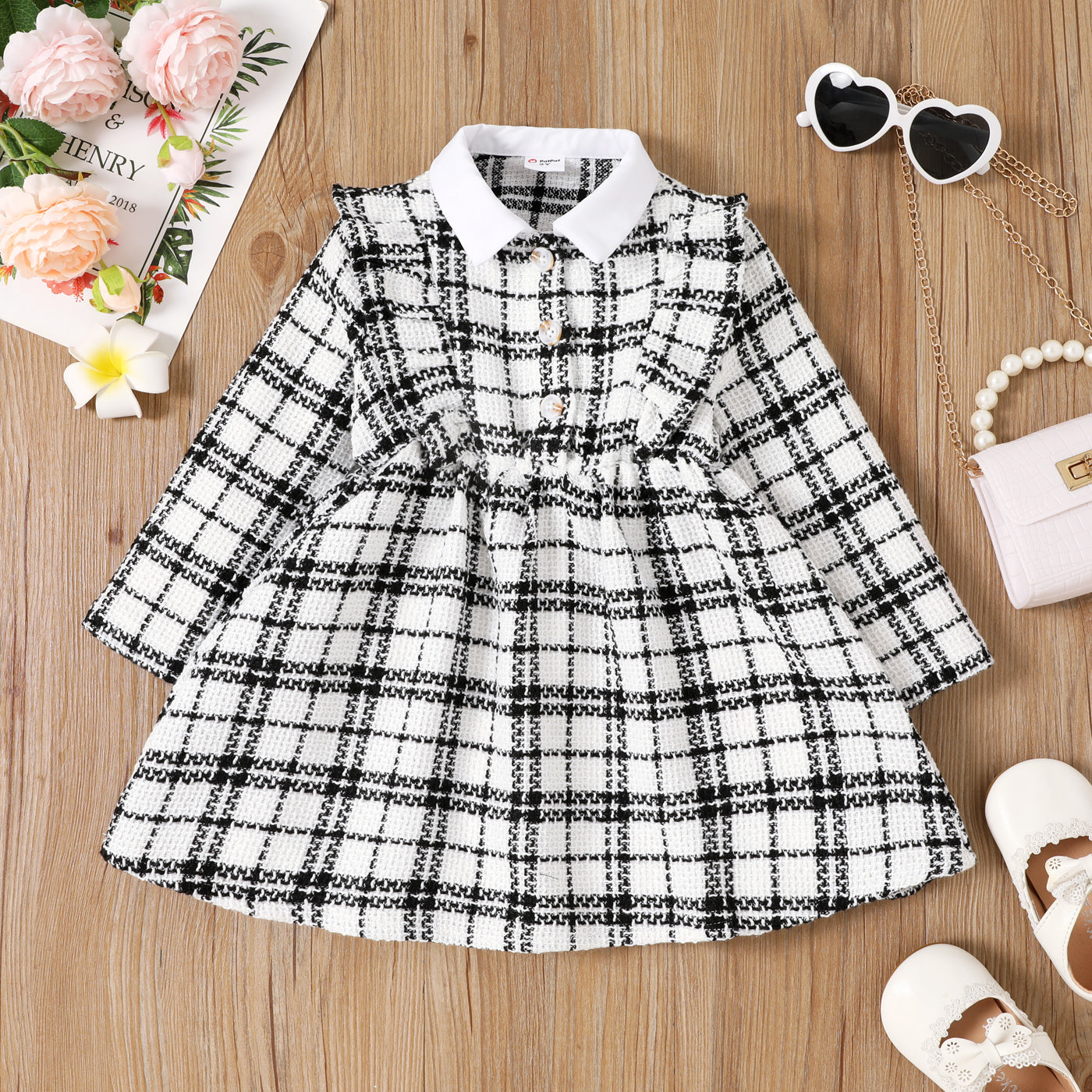 Toddler Girl Classic Grid Pattern Ruffle Edge Dress