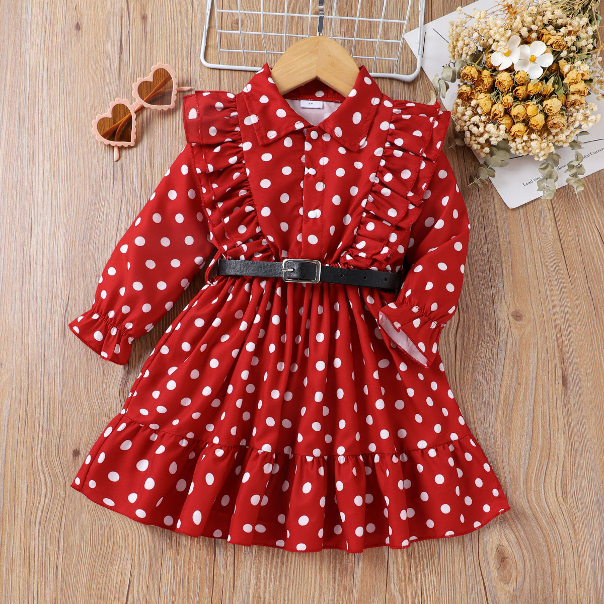 Sweet and stylish this imported toddler dress features a charming polka dot design. Perfect for autumn outings!”Fabric:”Made from a blend of 95% polyester and 5% spandex.”Care Instruction:” Easy care – machine wash in cold water do not bleach tumble dry on low cool iron if needed do not dry clean.”Key Features:”* Product Features: Delightful frill detail.r