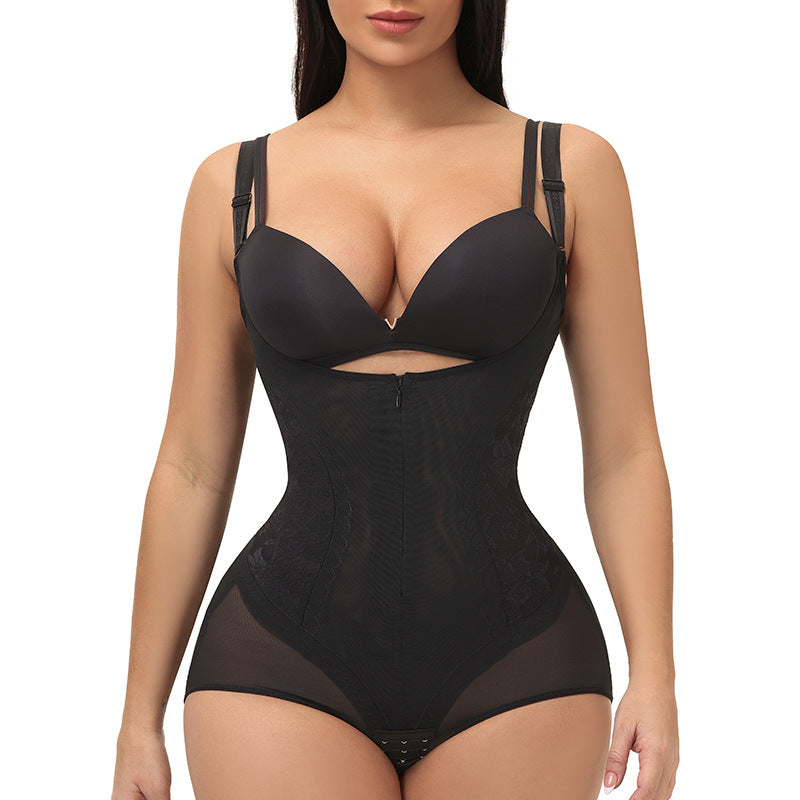Women Mesh Panel Invisible Zipper Butt Lifter Tummy Control Shapewear Open Bust Bodysuit (Without chest pad)