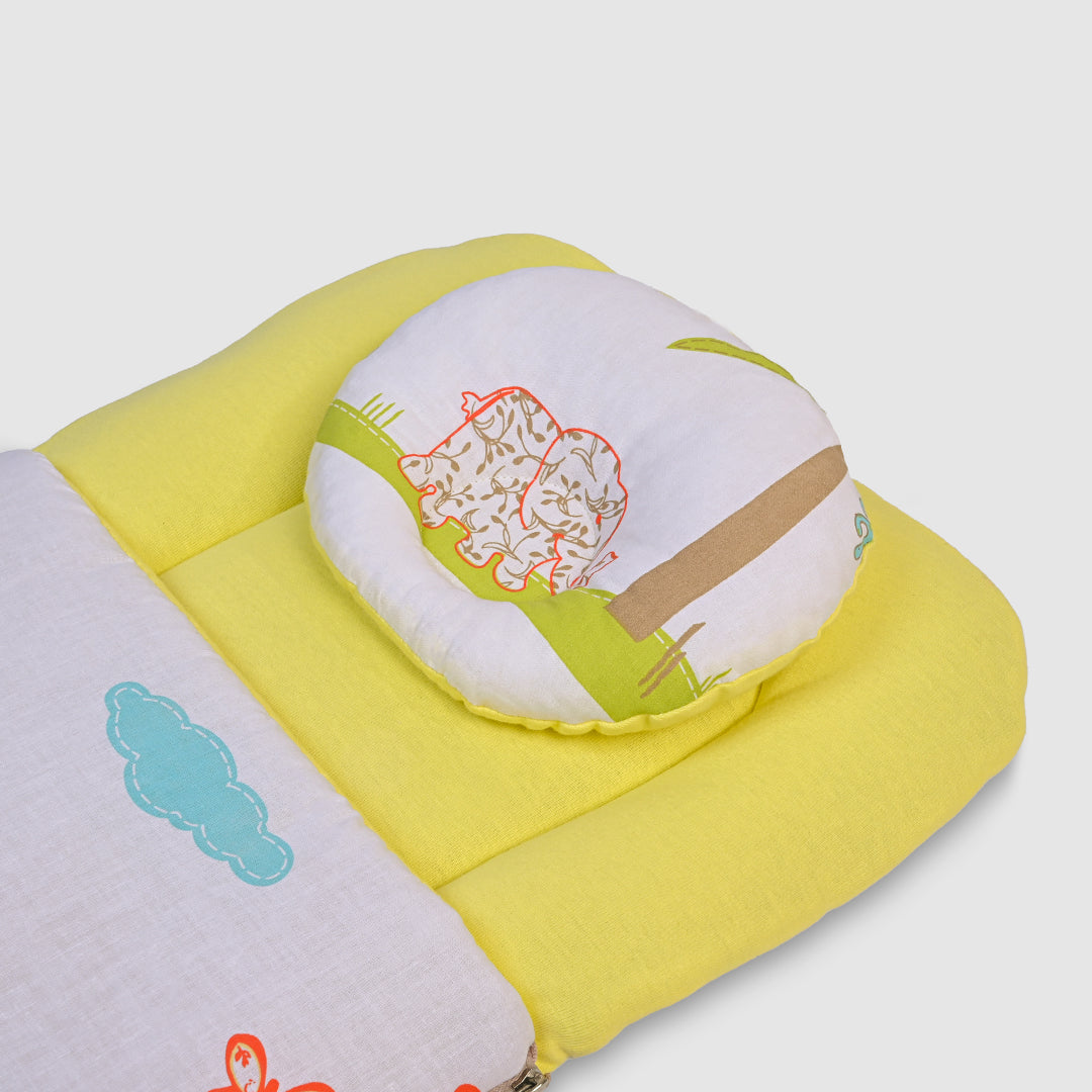 Introducing the Yellow Baby Carry Nest with Safari Print, designed for your little explorer’s comfort. This vibrant carry nest features adorable safari animals that spark imagination while providing warmth for restful naps.